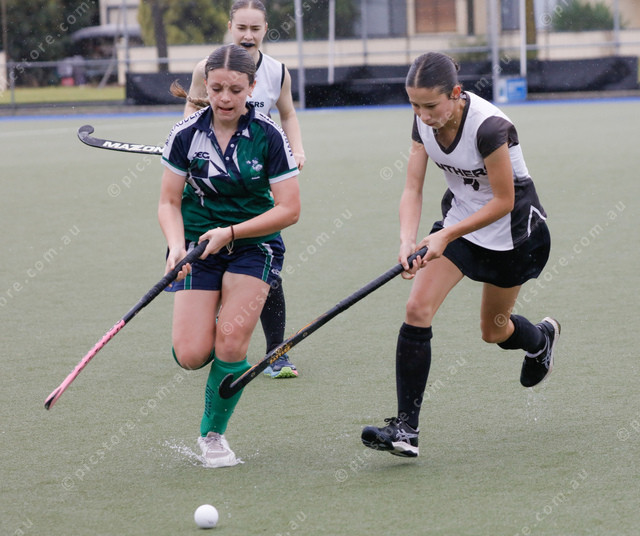 Marauders’ Layla Sheard and Panthers player Isla Wilson chase the ball in the under 14s. (Jack Davies: 479156_03)