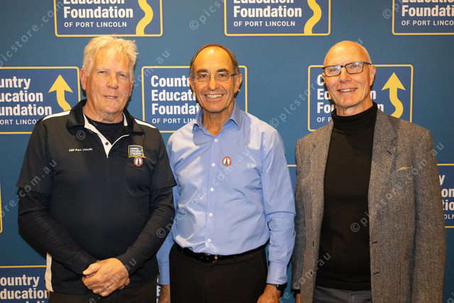 Country Education Foundation’s Greg Barry and Brian Gabb with PLHS Old Scholars’ Association patron Chief Justice of South Australia Chris Kourakis (centre). (497350_22)