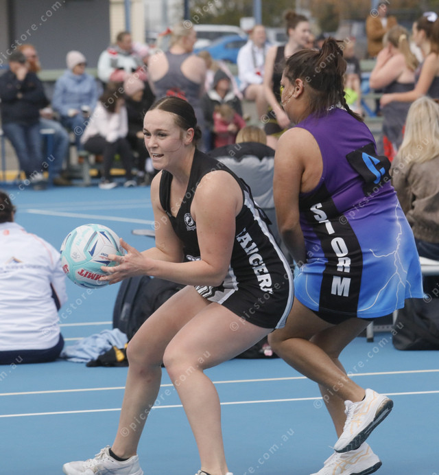 Wanilla Rangers wing attack Lilee Trenowden assesses her options. (500386_04)