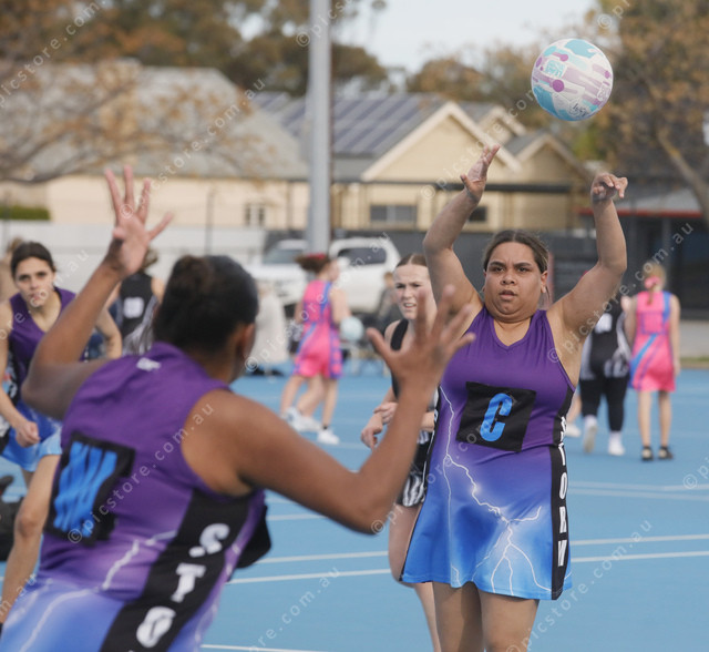 Shakaya Walsh passes the ball in the direction of teammate Timeisha Simpson. (495685_08)