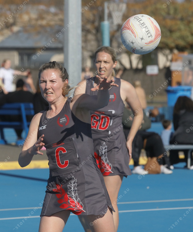 Tasman Imperial centre Karli Sargent throws a quick pass across the court. (498735_02)