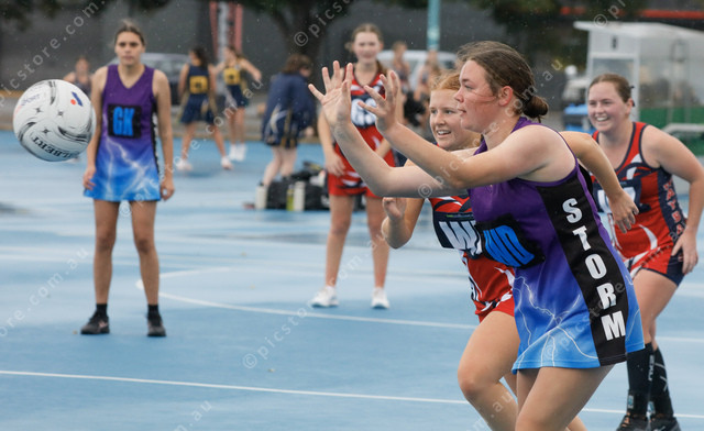 Ravendale Storm’s Harmony Sincock and Wayback’s Claire Daniell race to the ball. (479154_07)