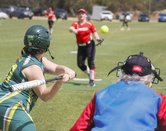 Roadrunners’ Siaan Cross watches the pitch from Squaws’ pitcher Alana Jantke. (522018_07)