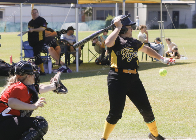 Shields’ Lilly Ornsby jumps out the way of a wild pitch. (525040_03)
