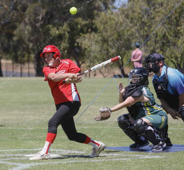 Cherylynne Letton hits a foul ball for Squaws in the B grade. (535449_02)