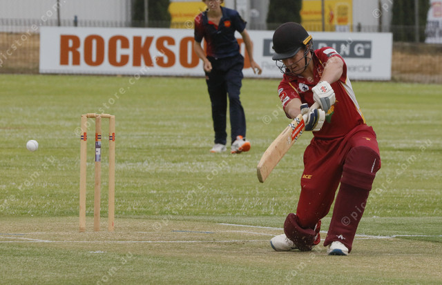 Harvey Pearce hits the ball square of the wicket on his way to 37 runs for Southern Eyre South. (528362_01)