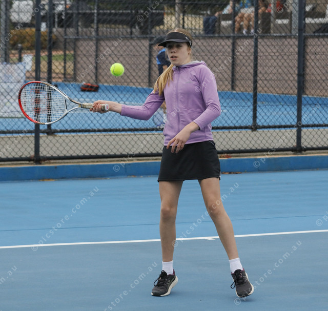 Sana Cunningham plays a forehand shot in her match. (518681_02)