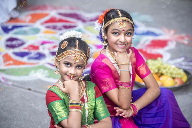 Koshika (left) and Rachna (right) both 7yo, from the Shakthiswaraa School of Dance (Wyndham Vale). 384571_01