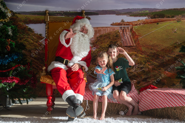 Santa and his friends Mia and Luca Boffa, of Sellicks, welcome Christmas at Myponga. (Dani Brown: 525367_01)