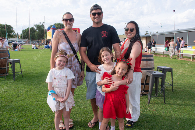Willow and Jessamy Stanway, of Mount Compass, Daniel and Willow Wano, of Sellicks, and Amelia and Lainey Yamashita, of Aldinga, line up to meet Santa. (Dani Brown: 525367_03)