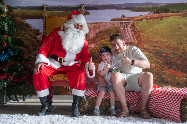Ollie and Tom Camp, of Reynella, meet Santa at the Myponga Christmas party. (Dani Brown: 525367_07)