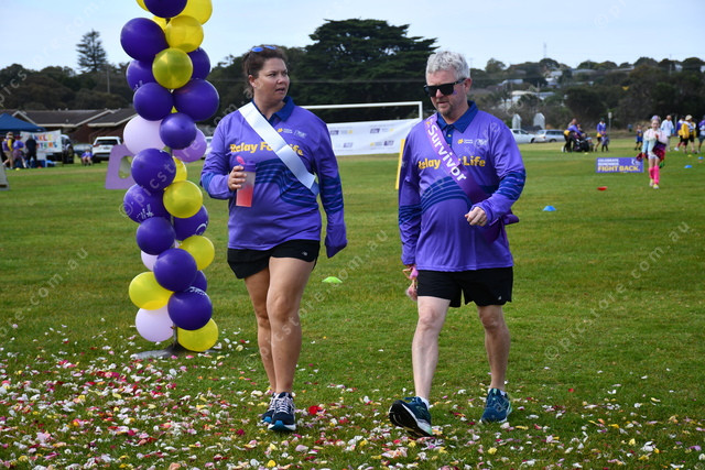 Teressa Rogers and David Rogers make their way under the Relay For Life banner. (Sierra Laird 462874)