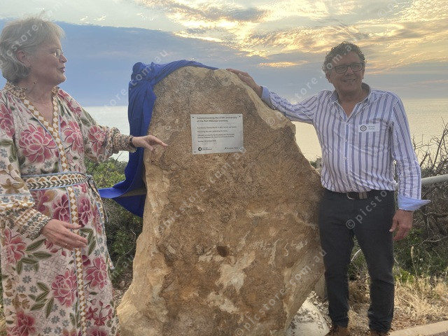 Her Excellency Frances Adamson Governor of SA unveils the plaque with Richard Forbes to mark the 175th anniversary of the founding of Port Willunga.