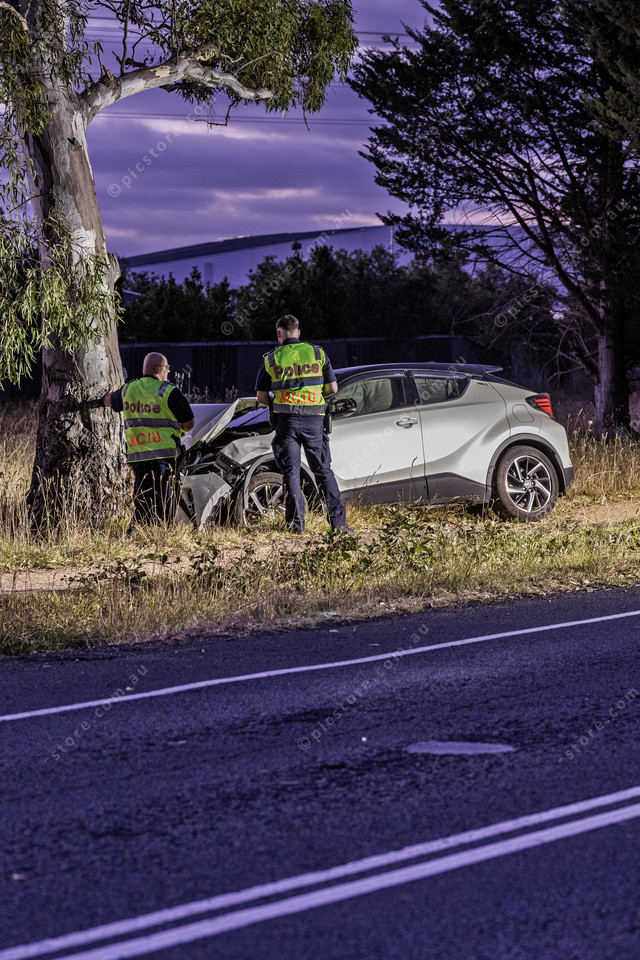 A car crash on Pound Rd Narre Warren Sth where a car hit a 16yo pedestrian that was critically injured and flown to a hospital. Photo taken around 9:30pm.