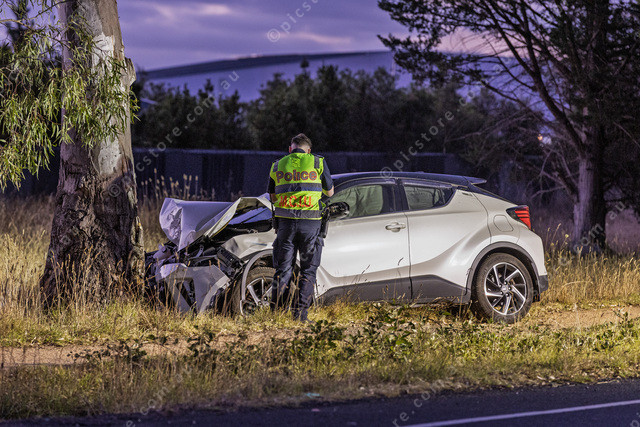 A car crash on Pound Rd Narre Warren Sth where a car hit a 16yo pedestrian that was critically injured and flown to a hospital. Photo taken around 9:30pm.