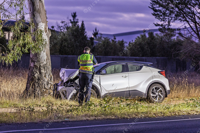 A car crash on Pound Rd Narre Warren Sth where a car hit a 16yo pedestrian that was critically injured and flown to a hospital. Photo taken around 9:30pm.