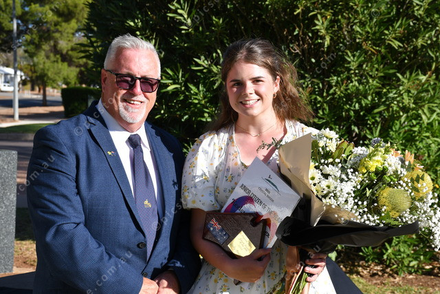 Keeley Greatorex, junior citizen of the year with Mayor Leon Stephens at the Crystal Brook Australia Day event 2025 (Neralie Bailey: 455706_07)