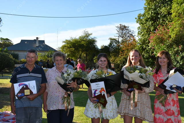 Christine and Trevor Wood, Keeley Greatorex, XX from the Crystal Brook netball club and Genevieve Wells (Neralie Bailey: 455706_11)
