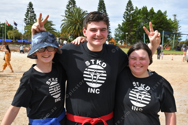 Bryce, Harry and Simone from Sun Taekwondo enjoying the beach at Solomontown on Australia Day 2025 (Neralie Bailey: 455706_17)