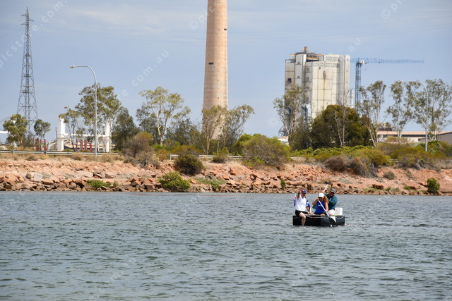 Andrew Thorsteinsen, Deputy Mayor Alan Zubrinich and Kaylene Zubrinich in the river during the raft race on Australia Day 2025 (Neralie Bailey: 455706_23)