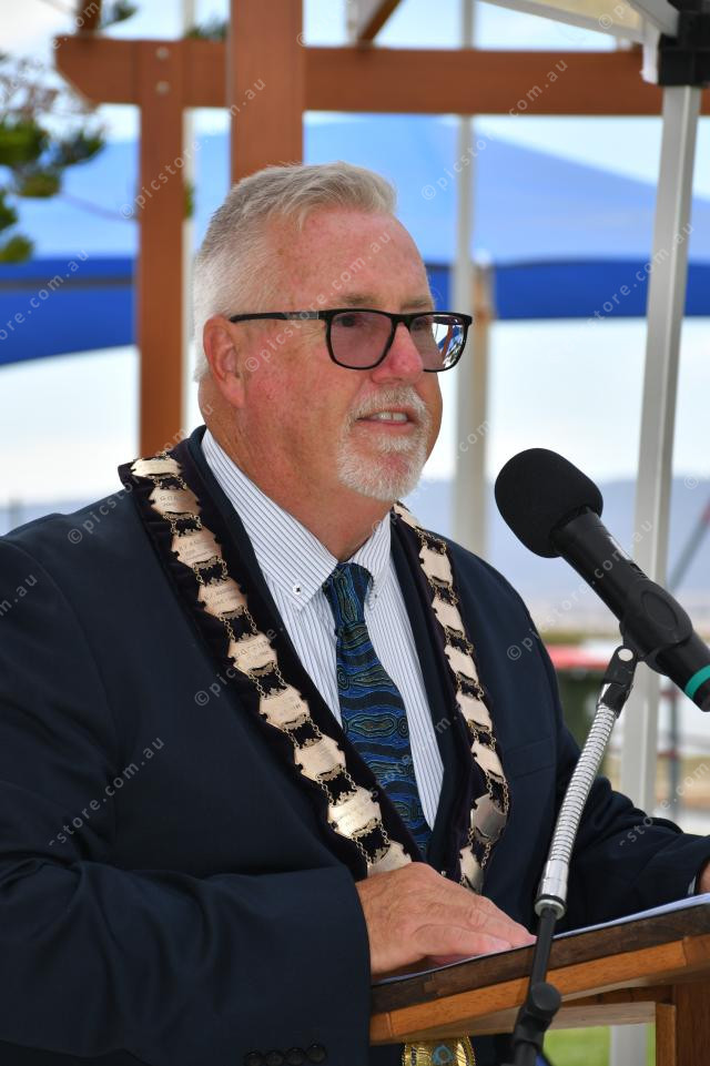 Mayor Leon Stephens addressed the crowd in Port Pirie at the Australia Day event 2025 (Neralie Bailey: 455706_30)