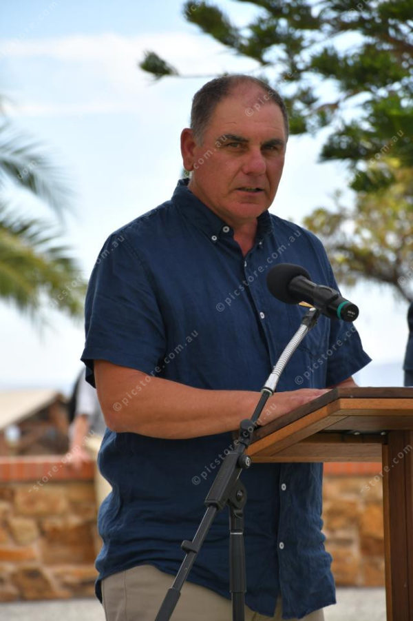 Port Pirie’s Citizen of the Year Philip Amato speaking at the 2025 event held at Solomontown Beach (Neralie Bailey: 455706_37)