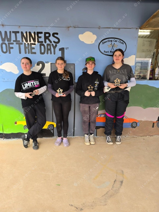 Juniors who completed the racing for the day in August at the Sporting Car Club of Port Pirie; from left Ruby Lane, Elise Frick, Gemma Brookman and Tosca Wobring (supplied)