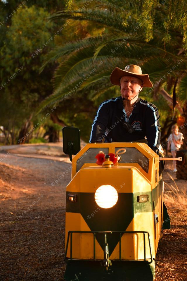 Robert Middleton driving one of the trains at the Port Pirie Miniature Railway And Engineering Club test run February 13, 2025 (Neralie Bailey: 459903_02)