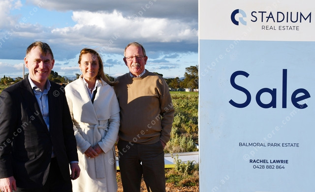 Minister for Housing Nick Champion and Selling Principal for Stadium Real Estate Rachel Lawrie with Geoff Brock, local MP for Stuart at the new housing site in Risdon Park (Neralie Bailey: 494508_01)