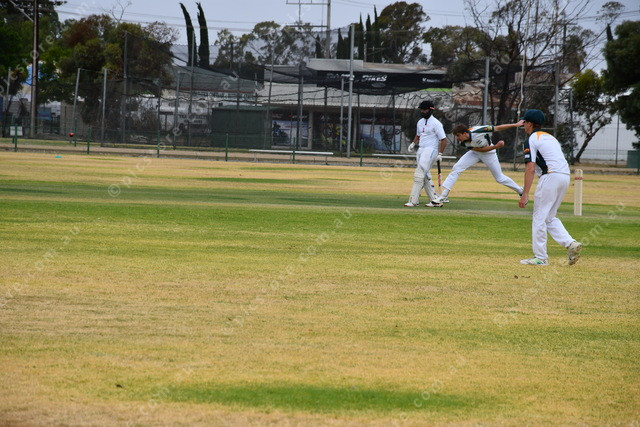 Ashton Grey bowling for Wandearah against Shane Richards for Crystal Brook at Port Oval on 10 January. (Tosca Wobring)
