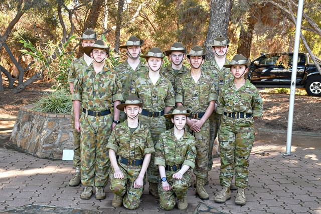 Members of the 414 Army Cadet Unit Port Pirie, Emi, Theo, Pareeka, Harry, Ben, Sophie, Petrus, Eva, Kaden and Jordan at the Vietnam Veteran’s Day service (Neralie Bailey: 497295_04)