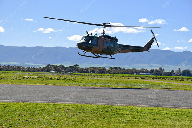 The restored ex RAAF and Army Huey 703, a Vietnam veteran, landing in Port Pirie to refuel on August 19 on the way home from the opening of the Vietnam Memorial Walk in Edithburgh (Neralie Bailey: 497295_05)