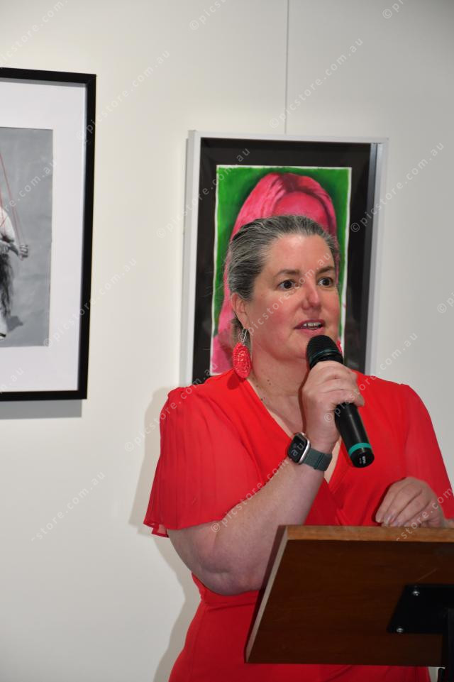 Gallery Coordinator Ursula Halpin at the opening of the new exhibition. (Tosca Wobring: 521928_05)