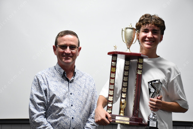 Cr Michael Hopgood and Junior Sportperson of the Year 2024 Leo Johnson (Neralie Bailey: 457475_09)