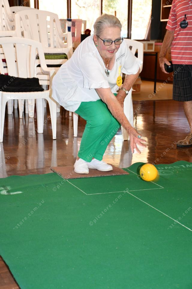 Coral didn’t let the camera distract her from the indoor bowls at the Port Pirie Senior Citizens Club (Neralie Bailey: 459211_04)