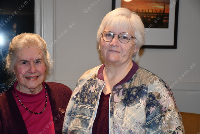 Louise Carmody and Elizabeth Wright at the Port Pirie Family History Group celebration dinner at the Risdon Hotel (Neralie Bailey: 494682_03)