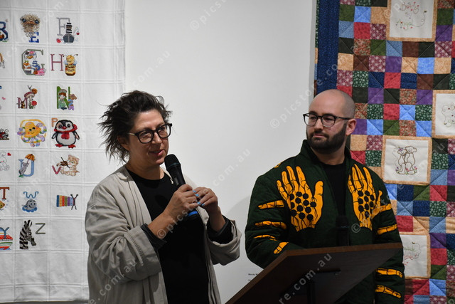 Artists and Orlando Mee and Kim Munro speak about their film Shimmering Worlds at the SALA exhibition opening (Neralie Bailey: 495488_02)