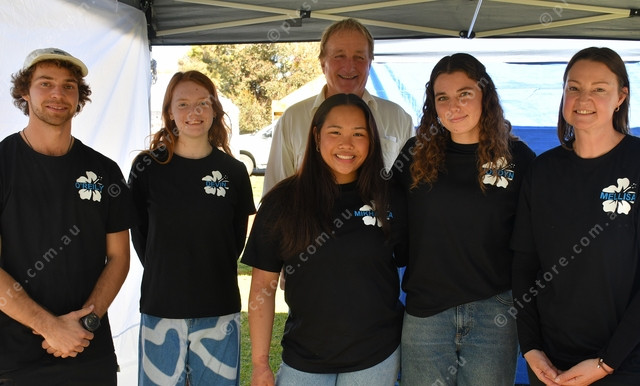 Preparing for the JPSS and Port Pirie year 10, 11, 12 Fiji trip were O’Reilly, Devin, Mikhaela, Jordyn and Mellisa with Brenton Vanstone at the market fundraiser (Neralie Bailey: 495488_31)