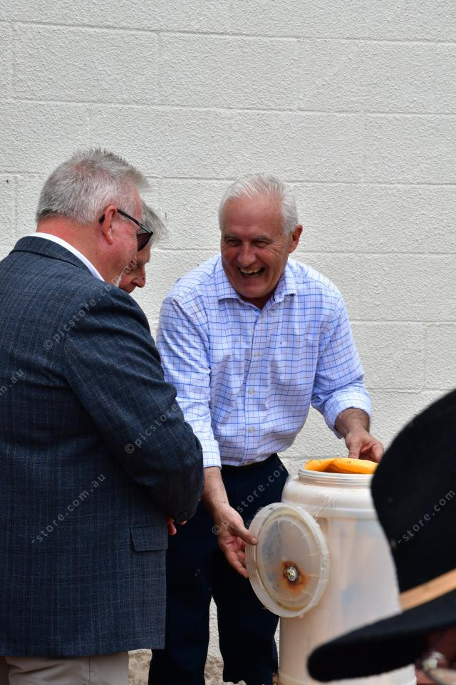 Mayor Leon Stephens with former Mayor Ken Madigan and Deputy Mayor Alan Zubrinich at the opening of the time capsule at the Napperby Now and Then event October 25 (Neralie Bailey: 513061_12)