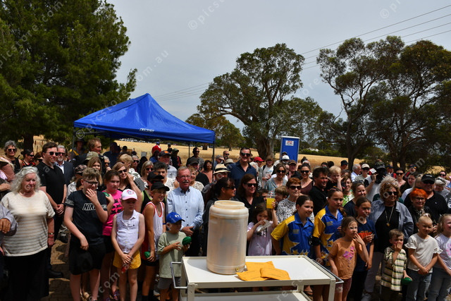 Part of the large crowd gathered at the opening of the time capsule at the Napperby Now and Then event October 25 (Neralie Bailey: 513061_15)