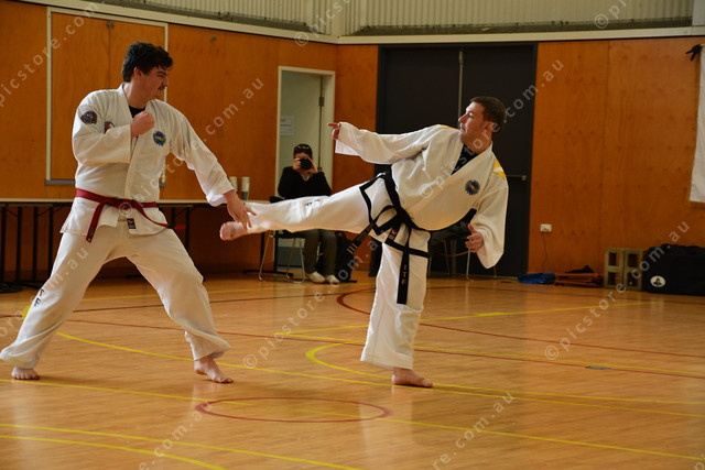 Free sparring Harrison Shepherd and a Black Belt from Adelaide Taekwon-Do (Neralie Bailey: 500054_11)