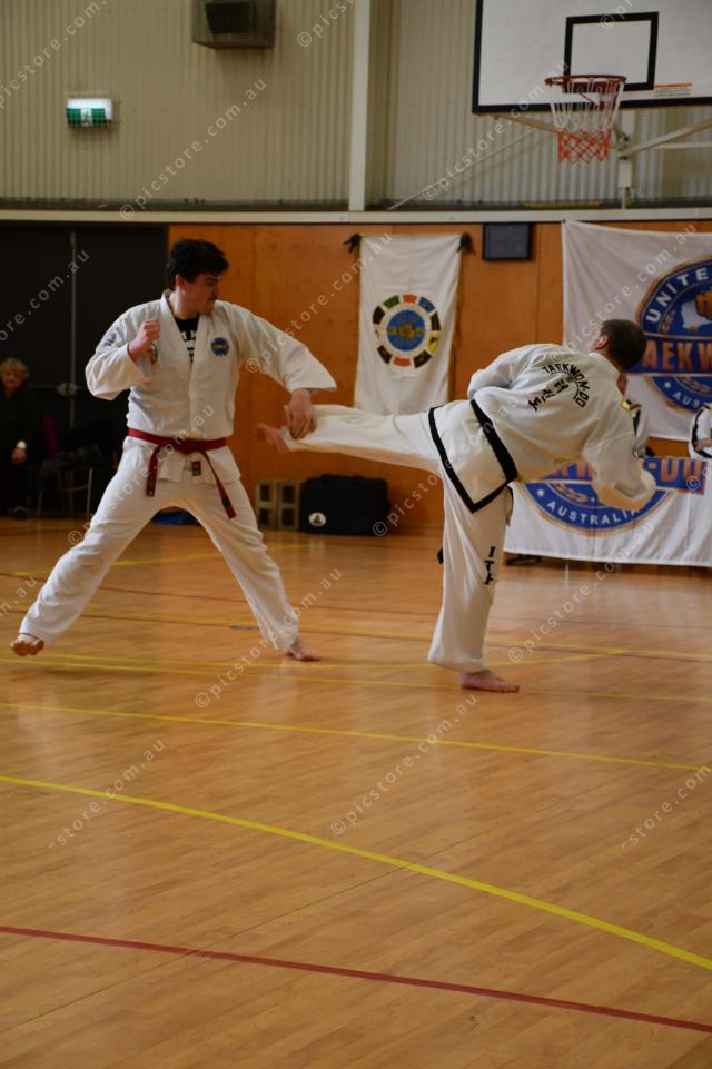 Free sparring Harrison Shepherd and a Black Belt from Adelaide Taekwon-Do (Neralie Bailey: 500054_12)