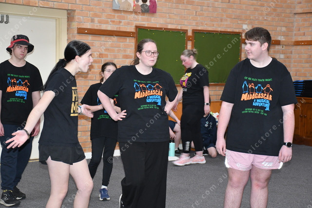 From left, Ashlee (Alex), Kathryn (Gloria) and Rex (Marty) in Port Pirie Youth Theatre’s production Madagascar Jnr. (Neralie Bailey: 501417_04)
