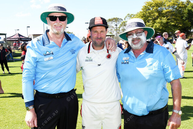 Umpires Mick McMahon and David Huntington with Mark Cooper 467311_23