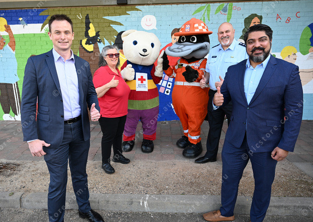 Emergency preparedness event between Maribyrnong and Moonee Valley councils. Pic of Mooney Valley Cr Phil Burn, Red cross volunteer Colleen Hartland, Mike Bangall from VICSES and Maribyrnong mayor Cr Pradeep Tiwari. Photo by Damjan Janevski. 483538_03