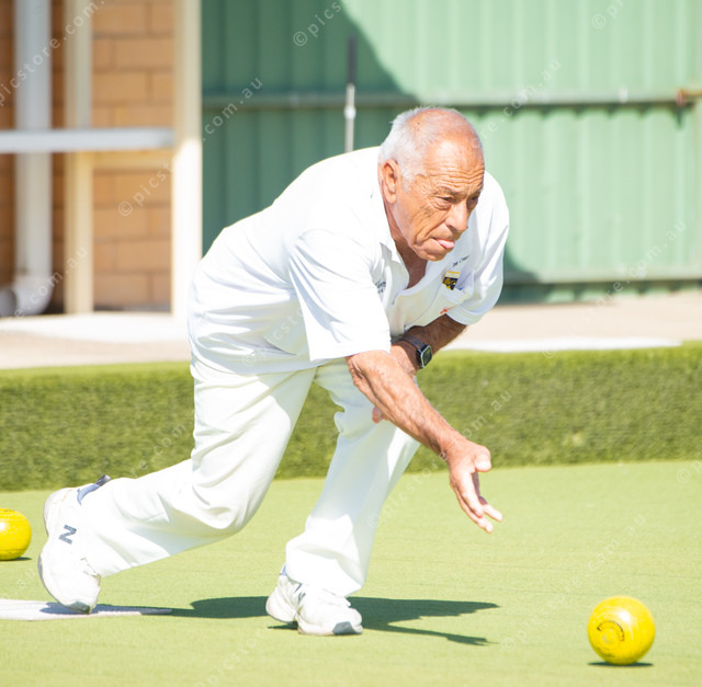 Past President Joe Conte in action at Victor Harbor Bowling Club. (Jack Church) 471558_05