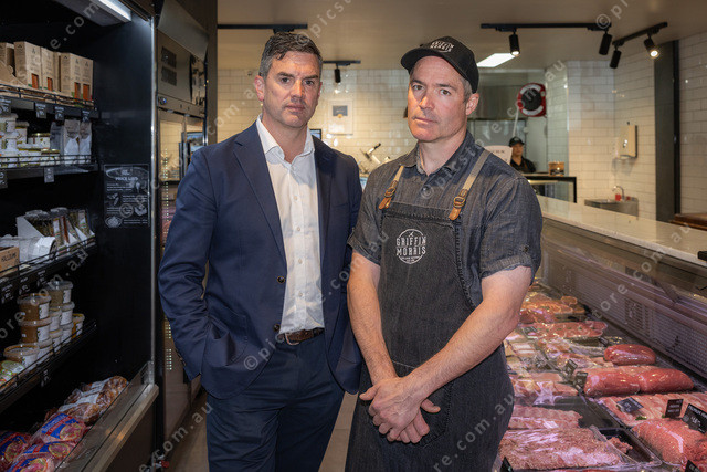 L-R Brad Battin and Stephen Morris inside Griffin and Morris Butcher’s Berwick.
