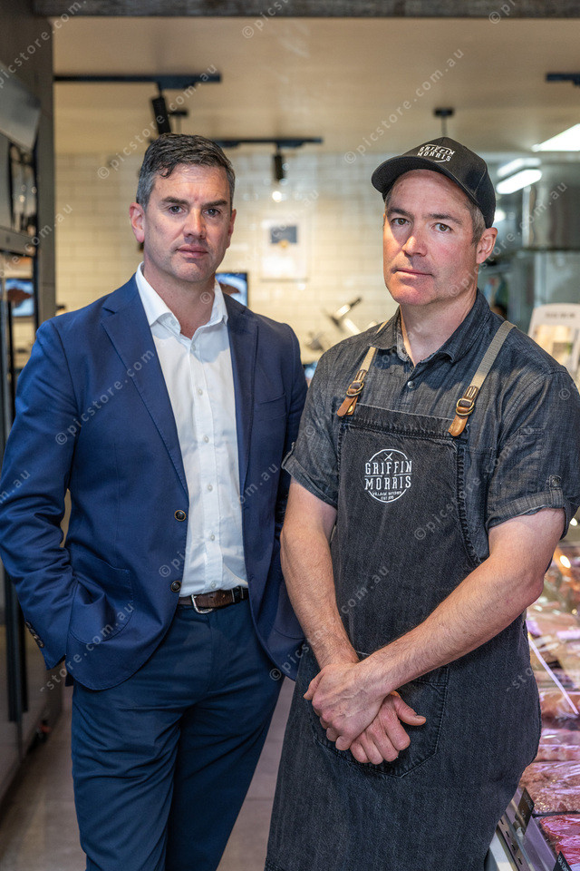 L-R Brad Battin and Stephen Morris inside Griffin and Morris Butcher’s Berwick.