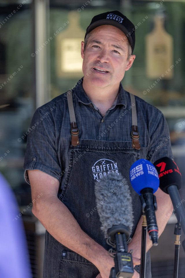 Stephen Morris speaking to the media.