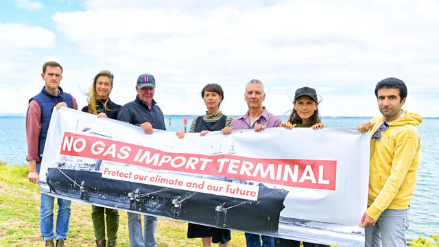 Karina Donkers (2nd from left) with fellow protesters make a statement (Ivan Kemp) 460390_01